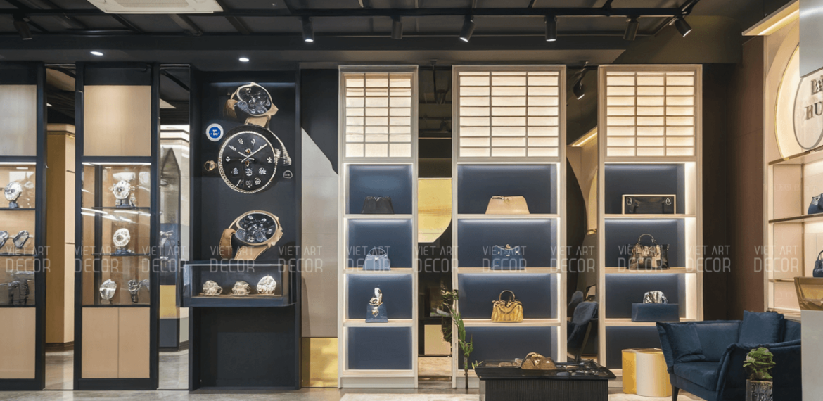 Một cửa hàng đồng hồ cao cấp không chỉ là nơi trưng bày và bán sản phẩm mà còn là không gian thể hiện đẳng cấp, sự sang trọng và tinh tế của thương hiệu. Để thiết kế và thi công cửa hàng đồng hồ cao cấp hiệu quả, cần chú ý đến nhiều yếu tố, từ bố trí không gian, ánh sáng, vật liệu, cho đến các chi tiết nhỏ nhất. Bài viết này sẽ phân tích cụ thể từng hạng mục cần quan tâm khi xây dựng một cửa hàng đồng hồ đẳng cấp.