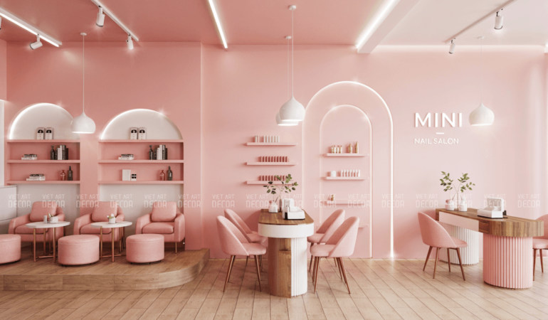 Khi thiết kế một tiệm nail hoặc salon với tông màu hồng, điều quan trọng là không chỉ tập trung vào màu sắc mà còn phải lựa chọn vật liệu phù hợp để tạo nên không gian hài hòa, sang trọng và thu hút khách hàng nữ. Dưới đây là những lưu ý chuyên môn…