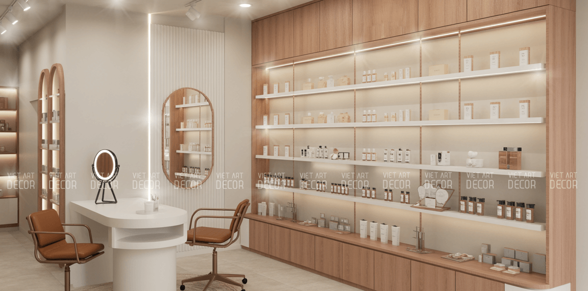 Chẳng hạn, phong cách tối giản vẫn tiếp tục phổ biến nhờ khả năng làm nổi bật sản phẩm và giảm thiểu rối mắt cho khách hàng. Các vật liệu như gỗ, kim loại mờ, kính cường lực, giúp tạo cảm giác gần gũi, thân thiện, đồng thời phù hợp với xu hướng sống xanh đang phát triển mạnh mẽ.